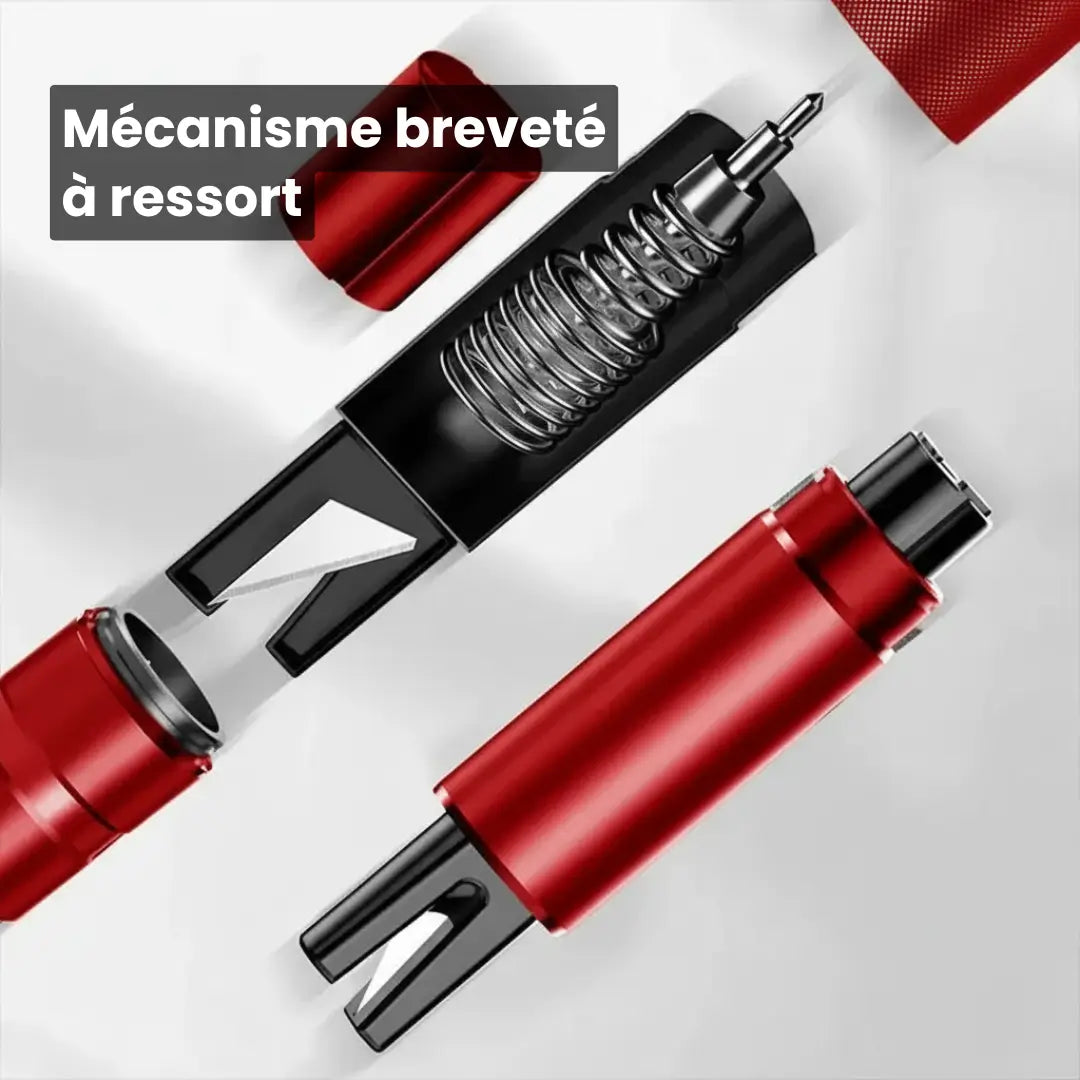 Oubliez les outils individuels compliqués ! L’AutoGuard PRO réunit tout ce dont vous avez besoin : un coupe-ceinture ultra-tranchant, un brise-vitre puissant et un design pratique. Ce n'est pas pour rien que les services d'urgence le recommandent.